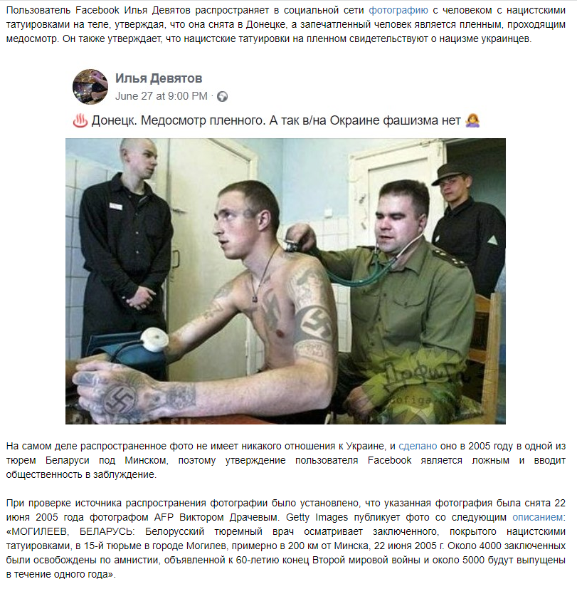 Цель этой статьи не является опровержение фейков или что-либо доказать, а просто демонстрация наглядных примеров лживой российской пропаганды о "нацистах на Украине".