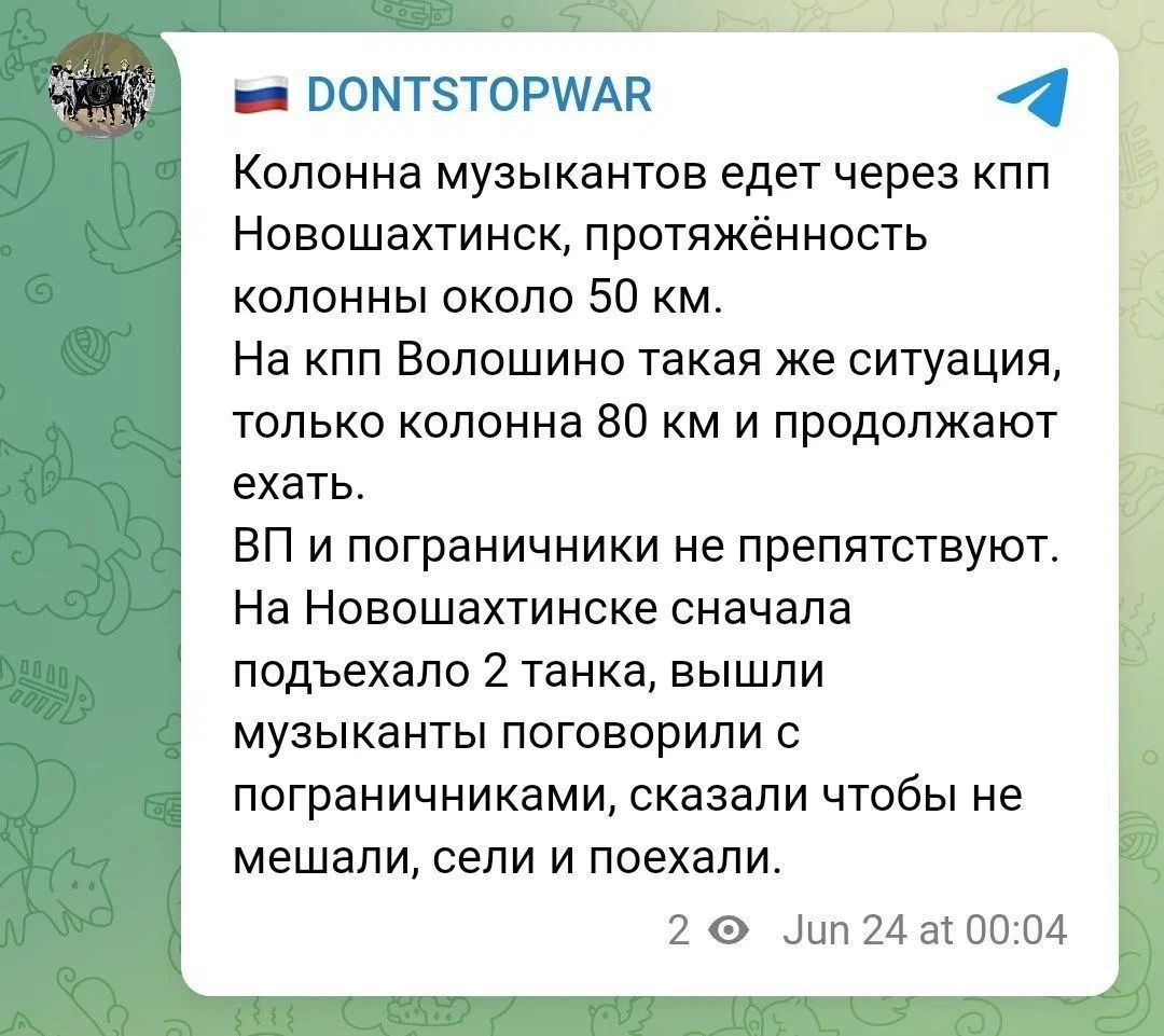 Но уже ночью появились видео в соцсетях от обычных граждан, что действительно что-то происходит, есть движение как боевиков Вагнера, так и ВС РФ, МВД...