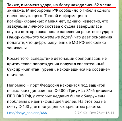 Оновлення: як і очікувалось (станом на 17.01.2024), офіційні особи в кремлі продовжують зберігати мовчання з приводу наслідків враження ВДК "Новочеркаськ", та приховують втрати серед членів екіпажу,