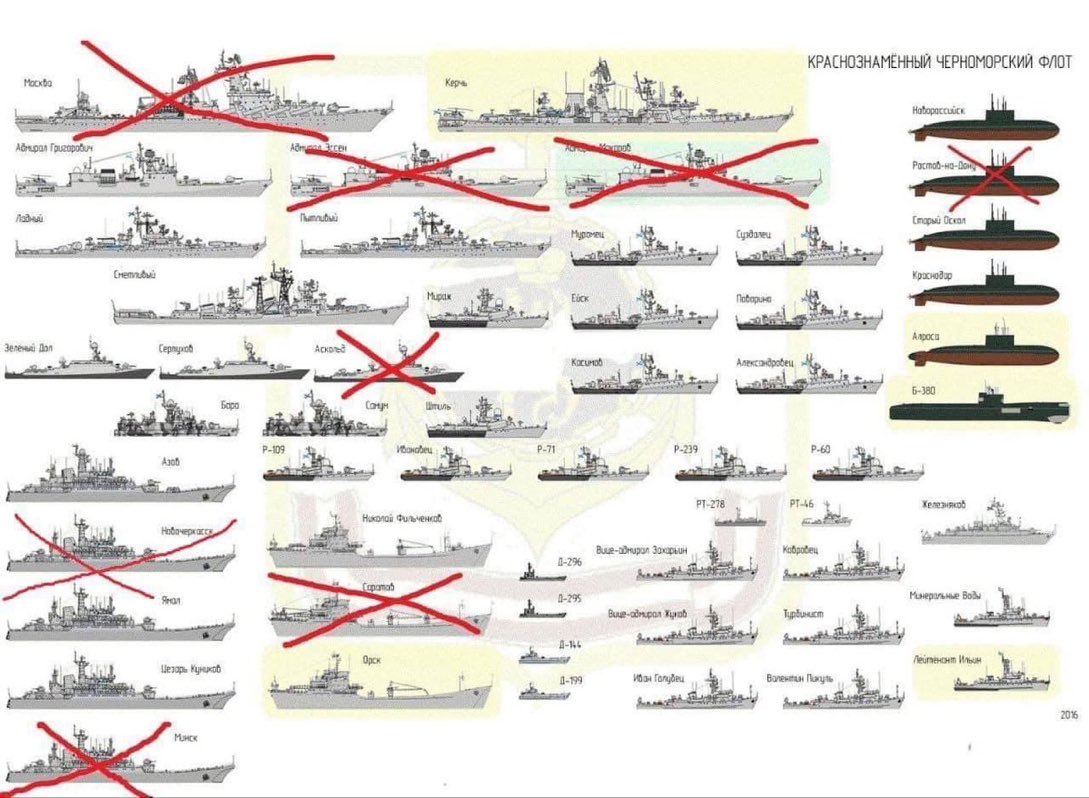 Загальна ситуація щодо знищених судів ЧФ РФ на поточний момент: