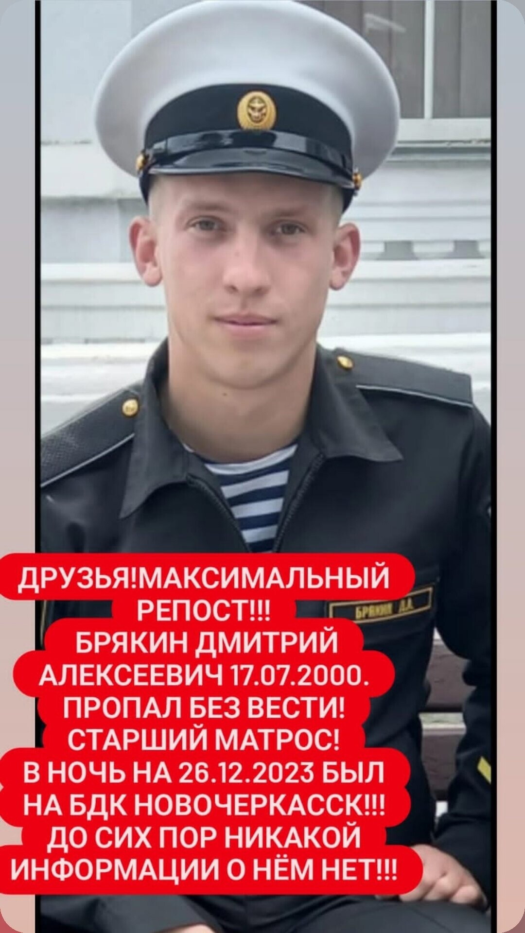 - Старший матрос Брякін Дмитро Олексійович 2000 р.н. з м. Саратов;