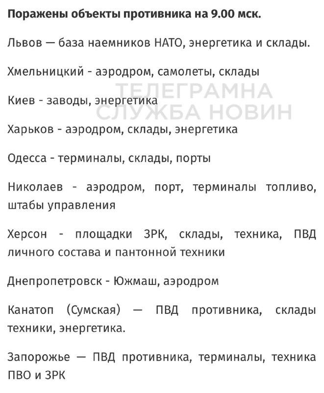 «Пологовий будинок, навчальні заклади, торговий центр, багатоповерхівки та приватні будинки, комерційний склад, паркування. Київ, Львів, Одеса, Дніпро, Харків, Запоріжжя та інші міста... Приблизно 110 ракет було випущено, більша частина збита»